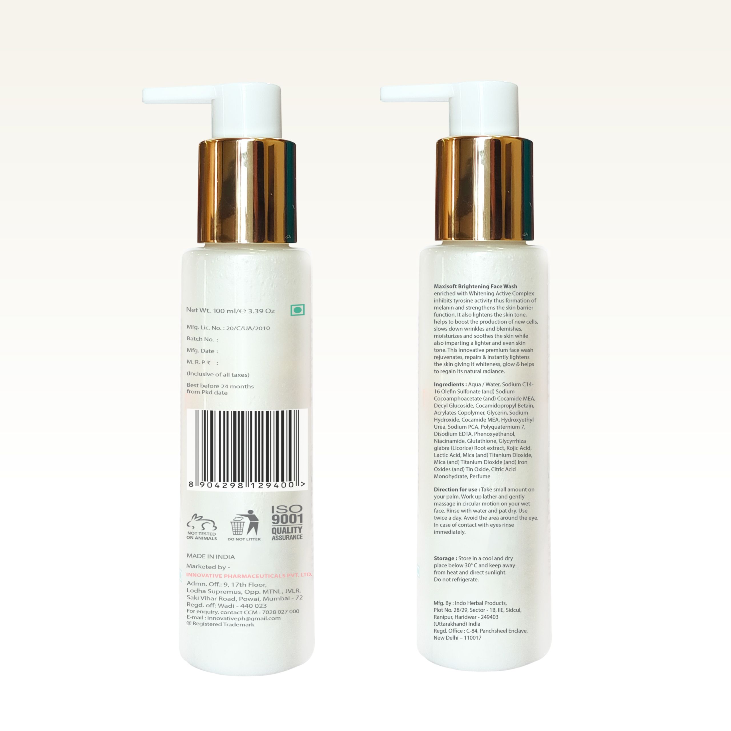Maxisoft Brightening Face Wash is a gentle face wash that helps to remove makeup and impurities, leaving skin brighter and smoother-looking. This innovative premium face wash will rejuvenate, repair & instantly lighten the skin giving it whiteness & glow.