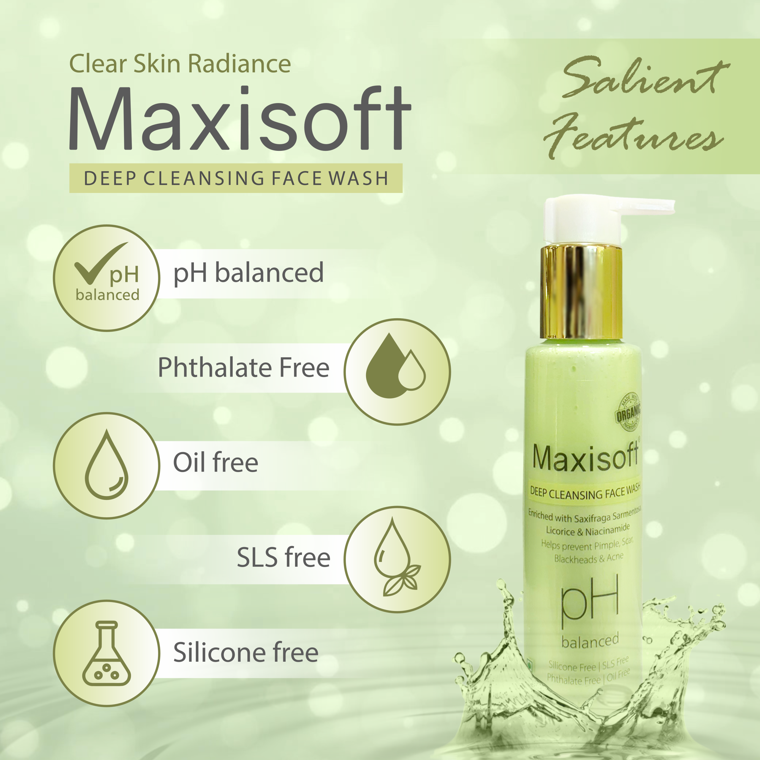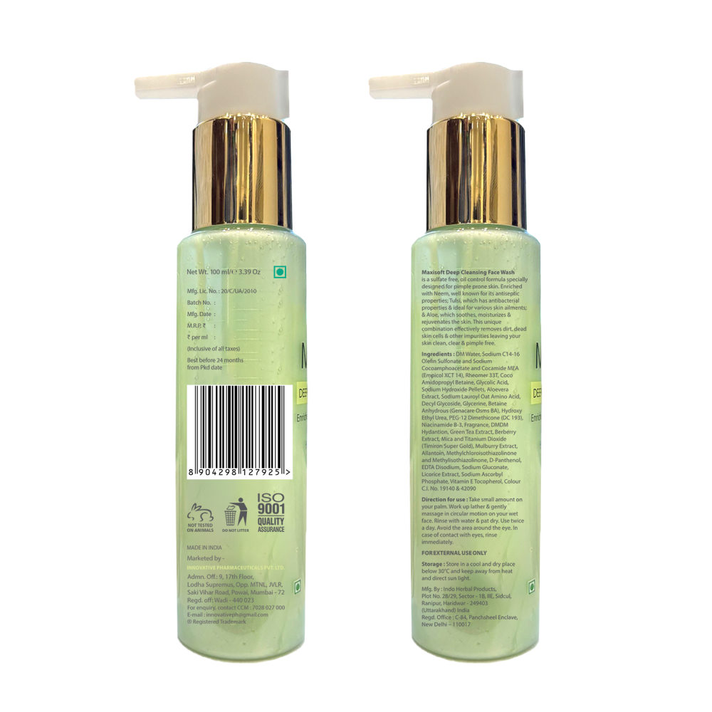 Maxisoft Deep Cleansing Face Wash effectively washes away dirt & impurities thus controlling pimples, acne and skin eruptions without any side effects & over-drying of skin. It also helps fight blackheads and white heads.