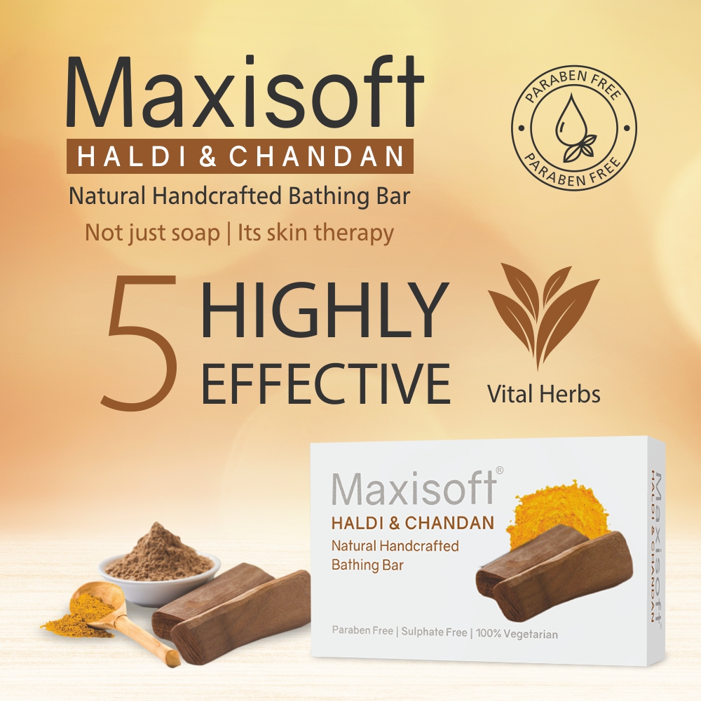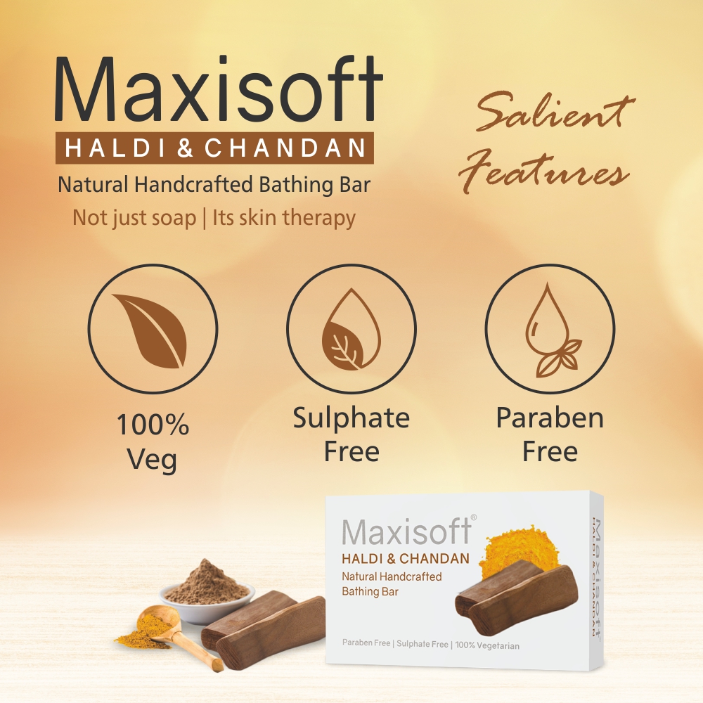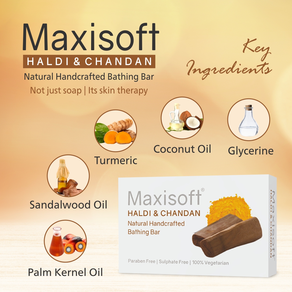 Maxisoft Haldi Chandan Bathing Bar adequately expels germs and grime from your skin. The combination of Haldi & Chandan in this cleansing bar removes pigmentation while ensuring all-day long hydration to your skin. Turmeric has natural antiseptic and antibacterial properties, making this soap a great companion for spot-prone or oily skin.