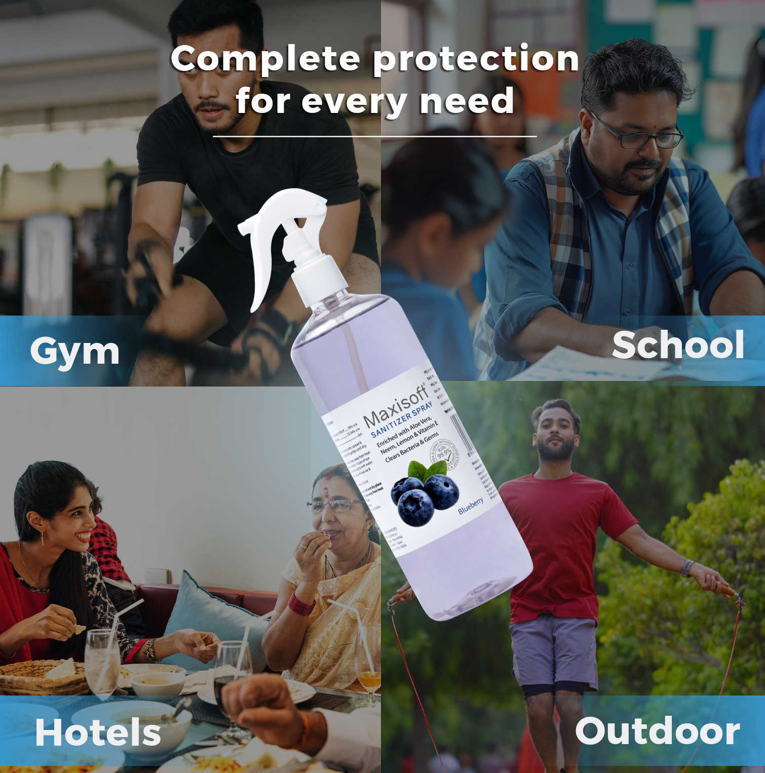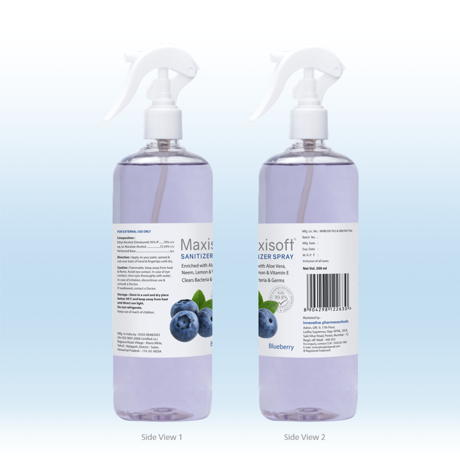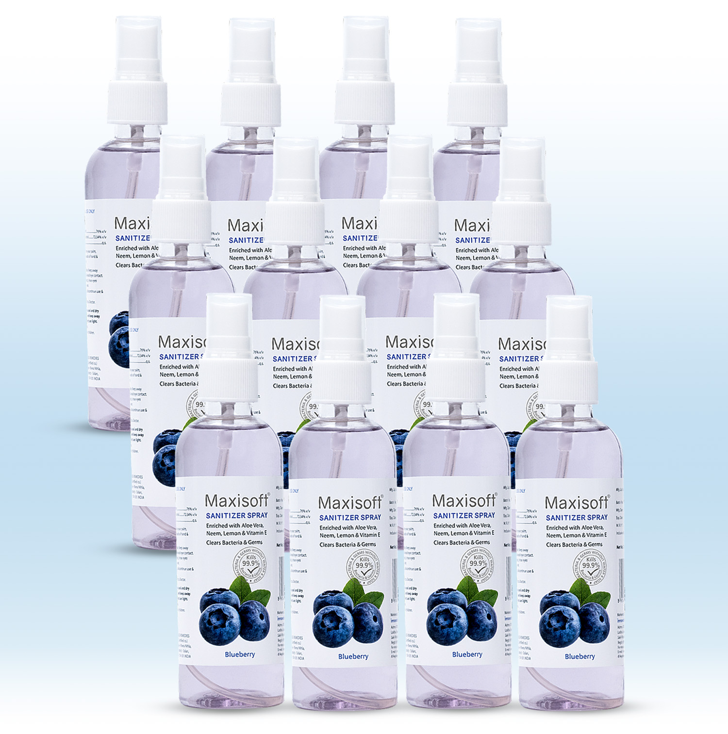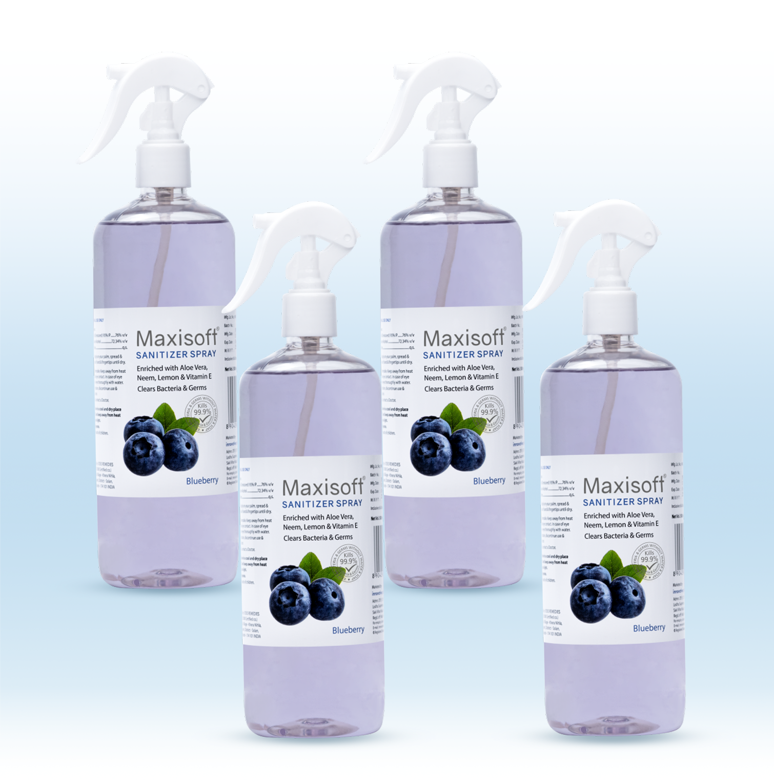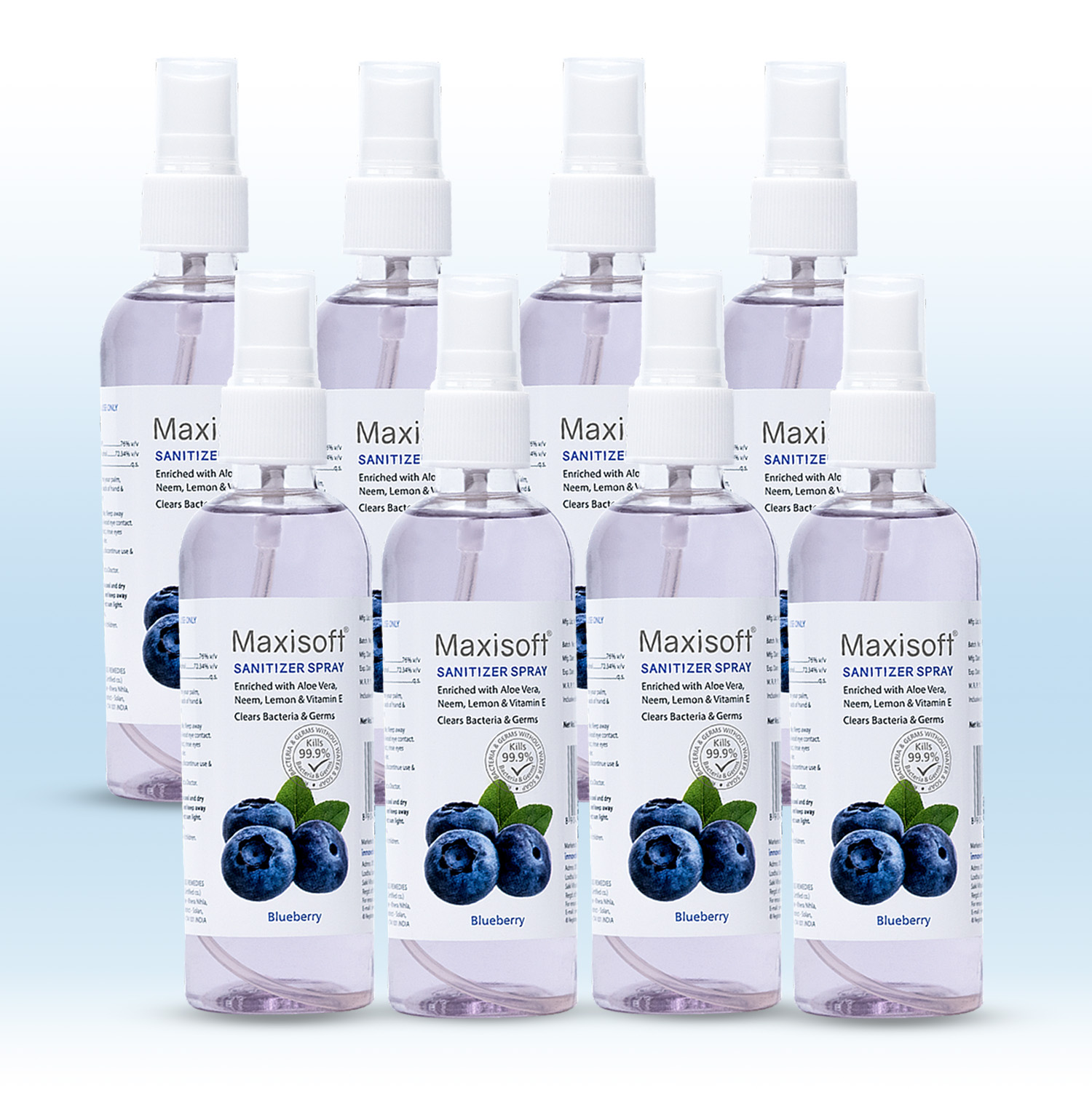 Maxisoft Hand Sanitizer Spray Blueberry is a sure-shot solution to kill harmful germs & bacteria. It’s just the perfect protection on the go without soap & water. Formulated with skin conditioning emollients, Maxisoft Hand Sanitizer Spray Blueberry is designed to be used multiple times without drying your hands.