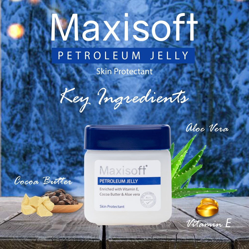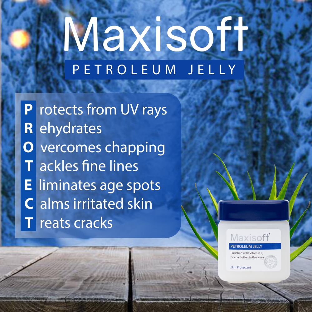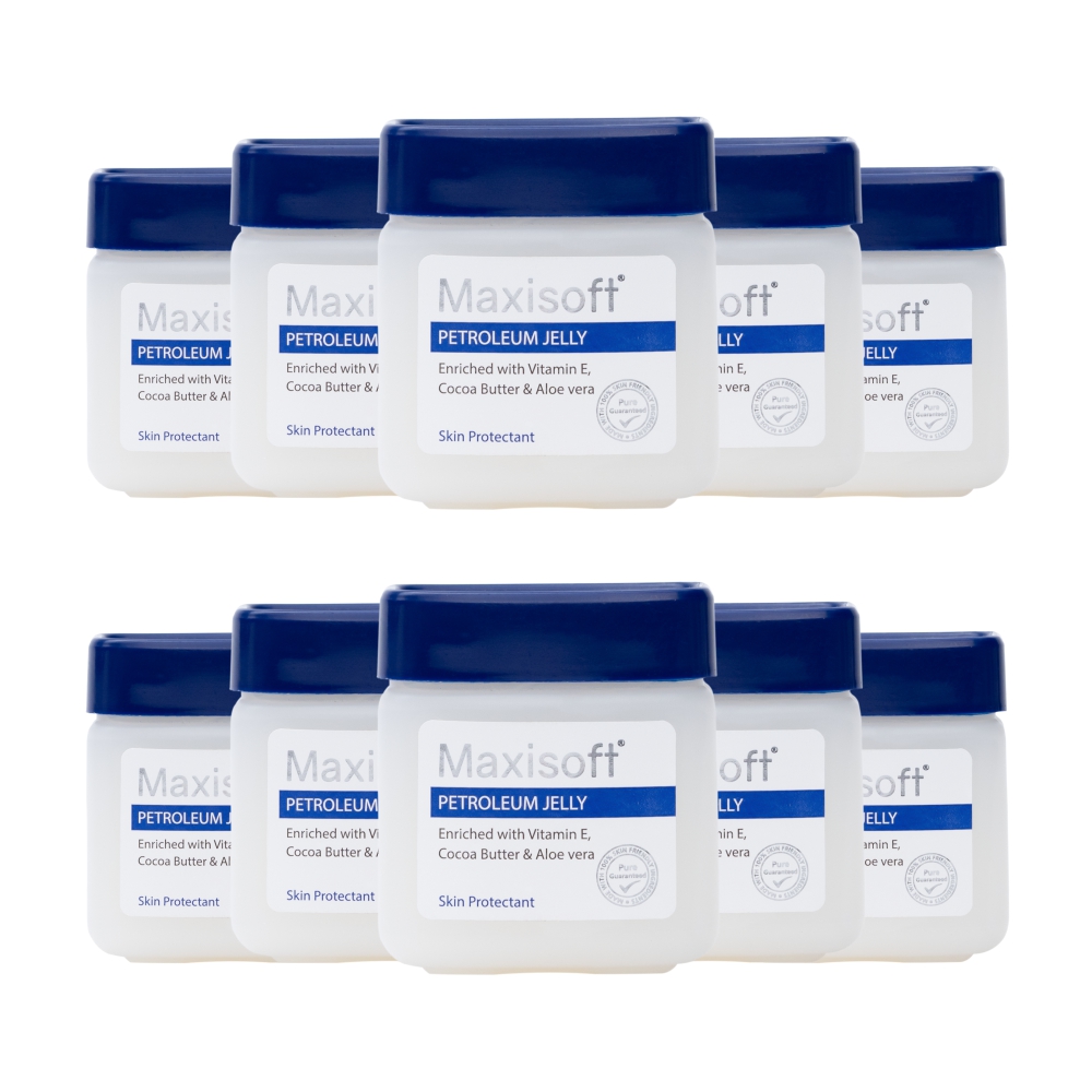 It helps to treat and prevent diaper rash in babies, moisturizes and heals dry skin, and helps to remove cosmetic makeup for protected & healthy skin. Say goodbye to dry & irritated skin with Maxisoft Petroleum Jelly.