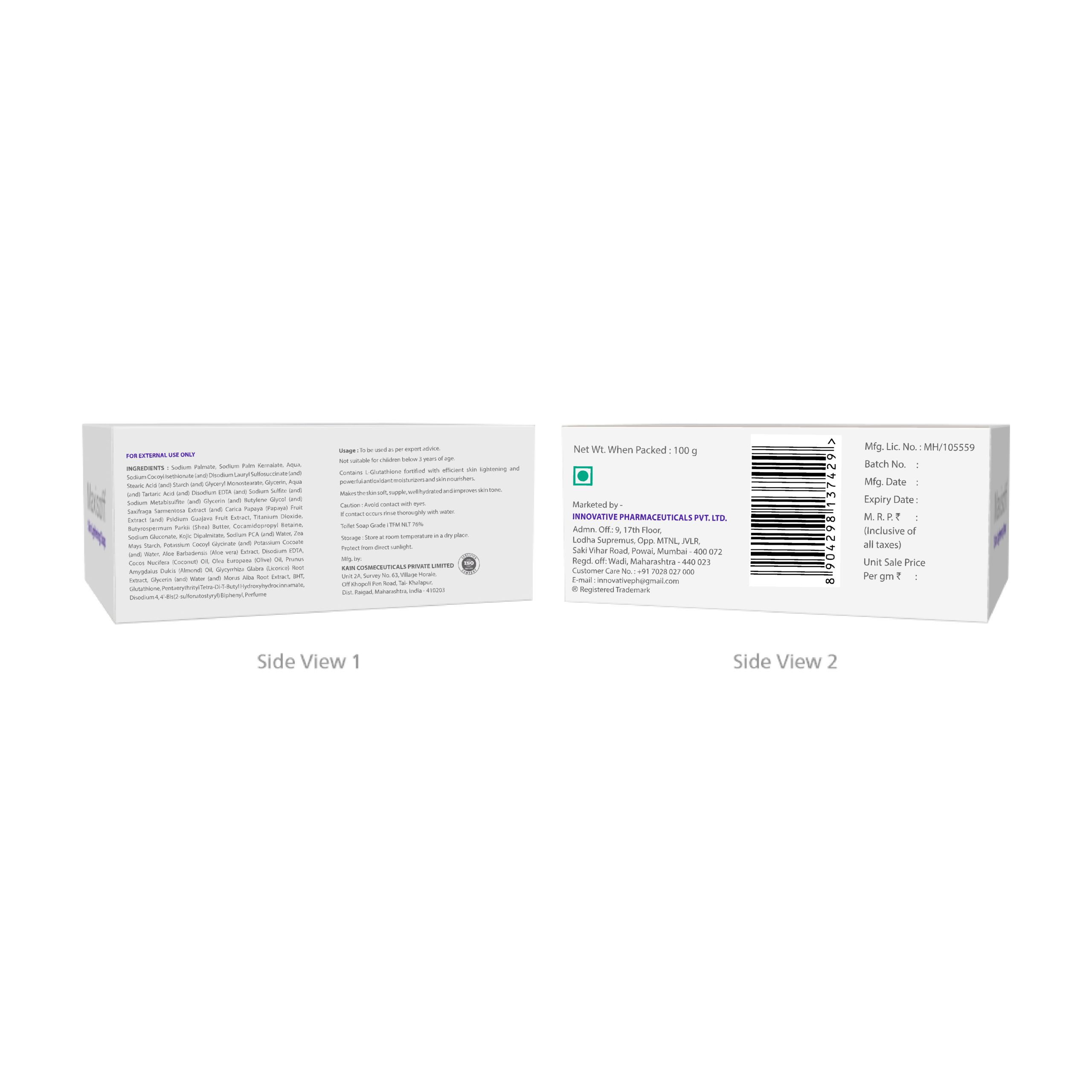 Maxisoft Skin Lightening Soap is blended with the goodness of Glutathione, Mulberry Extract, Licorice Extract & Shea Butter. Glutathione works by inhibiting the skin’s production of melanin, resulting in a natural lightening of the skin. It helps in treating hyperpigmentation, freckles, uneven skin tone, age spots, and other signs of aging.